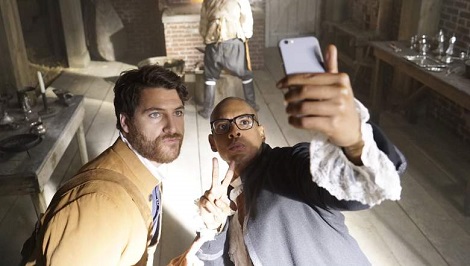 Dans cette nouvelle relecture de l’exploration temporelle on découvre en premier lieu Dan Chambers (Adam Pally), prof d’université de son état, totalement paumé dans son existence qui semble enfin avoir donné sens à sa vie en remontant le temps par accident. Se servant de ses connaissances du XXIème siècle, le brave homme a réussi à se faire apprécier des personnages historiques du XVIIIème jusqu’à tailler le bout de gras avec les pères fondateurs de la révolution américaine entre deux pintes de bières. Mieux, Dan a réussi à trouver dans le passé ce qui lui faisait cruellement défaut dans le présent, l’amour ! Malheureusement, il aurait peut-être mieux valu pour l’histoire américaine que Dan apprenne à se servir de Tinder ou d’Adopteuncheval car sa petite amourette risque bien d’entraver le déroulement de la grande histoire.